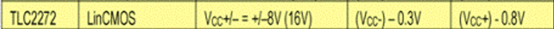表1列舉了幾個德州儀器(TI)運算放大器的例子及其VICMR。“最大電源范圍”欄描述了雙電源和單電源(括號內)限制。 由該表,我們清楚地知道各運算放大器的輸入范圍VICMR明顯不同。根據器件的具體類型,VICMR可能會低于或者超出電源軌(請注意:Technology有不同)。因此,絕不要假設運算放大器可以接收特殊輸入信號范圍,除非在產品說明書規范中得到核實。