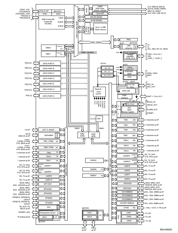 3、大容量存儲(chǔ)器:STM32F413CGU6內(nèi)置了1MB的閃存存儲(chǔ)器和320KB的SRAM,可以滿足復(fù)雜應(yīng)用程序的存儲(chǔ)需求。